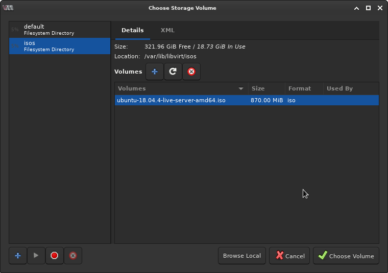 sudo wget -P /var/lib/libvirt/isos \ https://mirrors.mit.edu/ubuntu-releases/18.04.4/ubuntu-18.04.4-live-server-amd64.iso