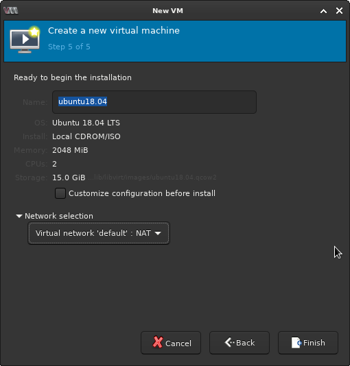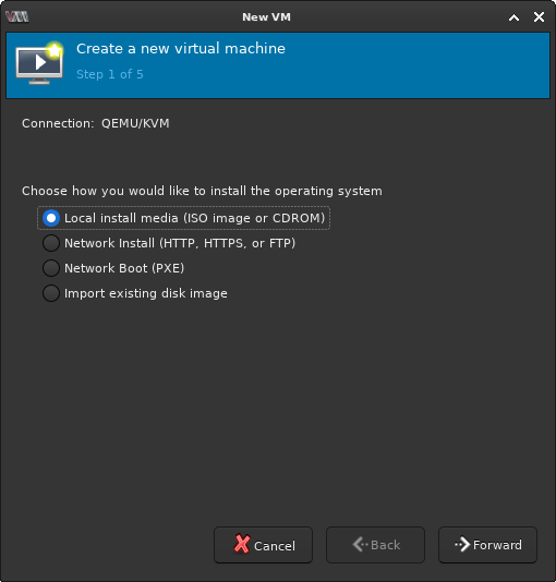 Create a VM using virt-manager