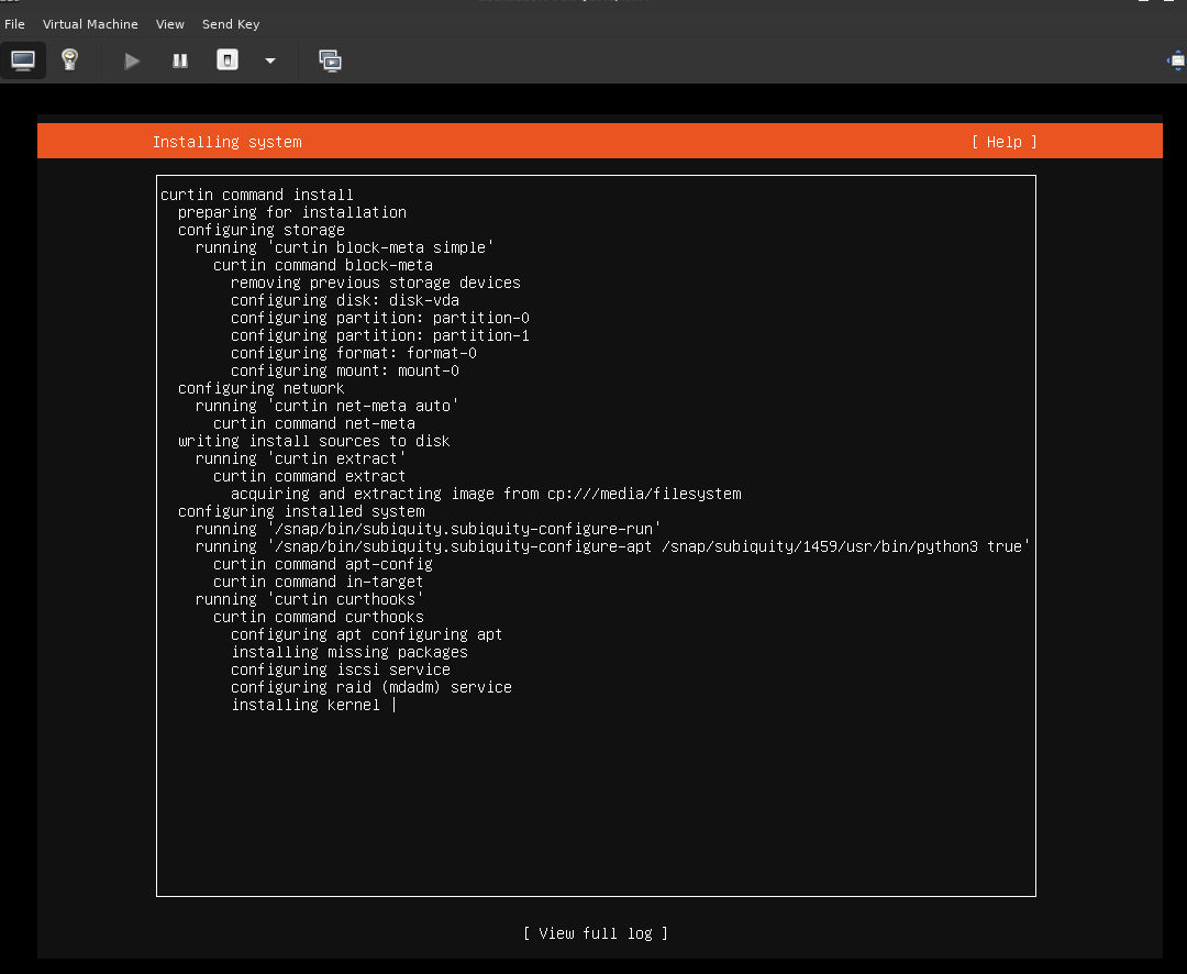 install procedure via the command line. This could be done directly with qemu, but to keep interaction like-for-like with virt-manager, I'll show the virt-install